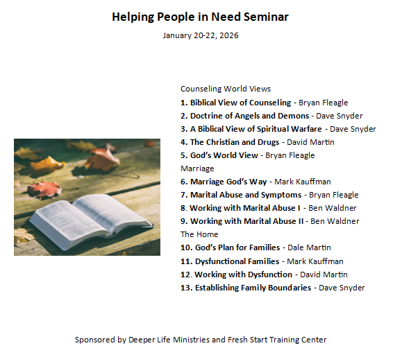 Sponsored by Deeper Life Ministries and Fresh Start Training Center